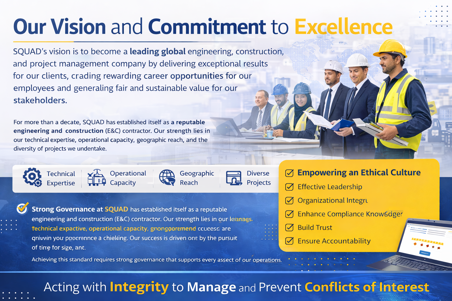 SQUAD’s vision is to become a leading global engineering, construction, and project management company by delivering exceptional results for our clients, creating rewarding career opportunities for our employees, and generating fair and sustainable value for our stakeholders.
